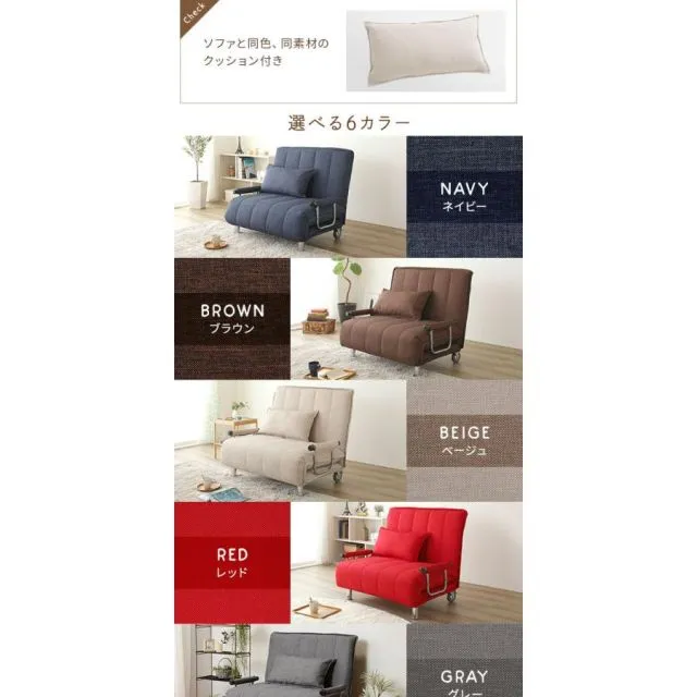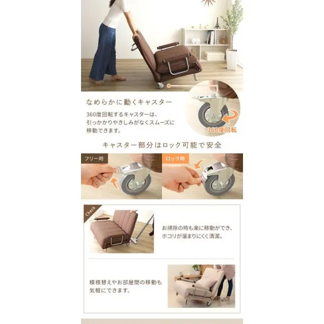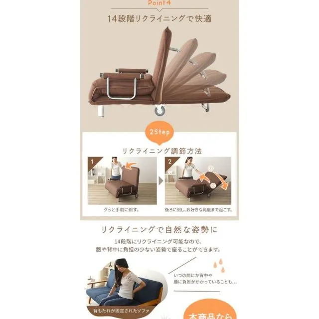 ・1台でソファスタイル、カウチソファスタイル、ベッドスタイルに変化します。