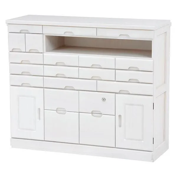 【多引き出し ウォッシュホワイト 幅93×奥行32×高さ78cm】 木製 〔リビング ダイニング 廊下 玄関〕