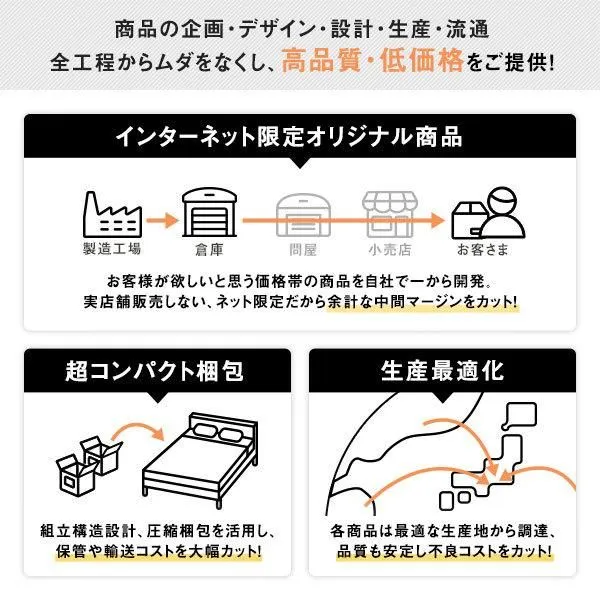・圧縮梱包の都合上、表面の生地にコイルの跡が残る場合がございます。時間とともに戻りますので、表面を均してください。