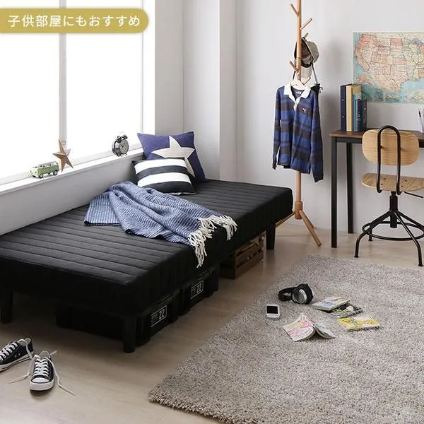 ■ショート丈シングル ブラック ボンネルコイルマットレス付き