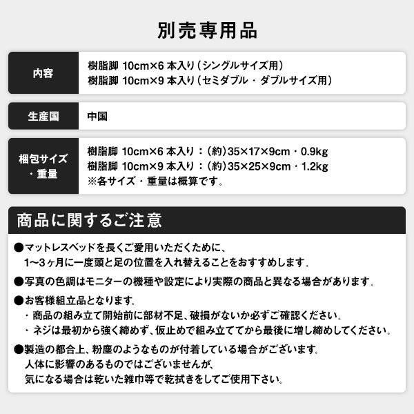 樹脂脚10cm×9本入り ※通常丈セミダブル・通常丈ダブルサイズ用