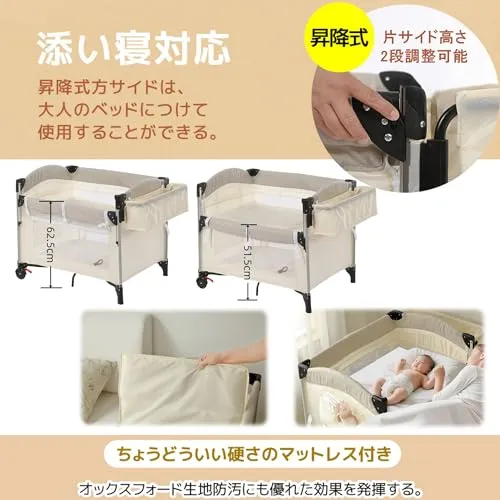 【添い寝対応】 片サイドは降りて、 大人のベッドにつけて使用することができる。