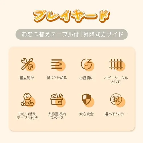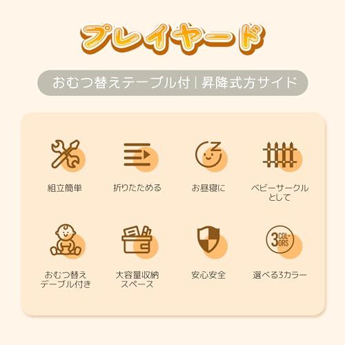 【収納スペースたっぷり】お子様の出入りに便利なファスナー式扉は、収納スペースとしてもらくらく!側面バックはお子様のおもちゃやおむつなどを収納できます。
