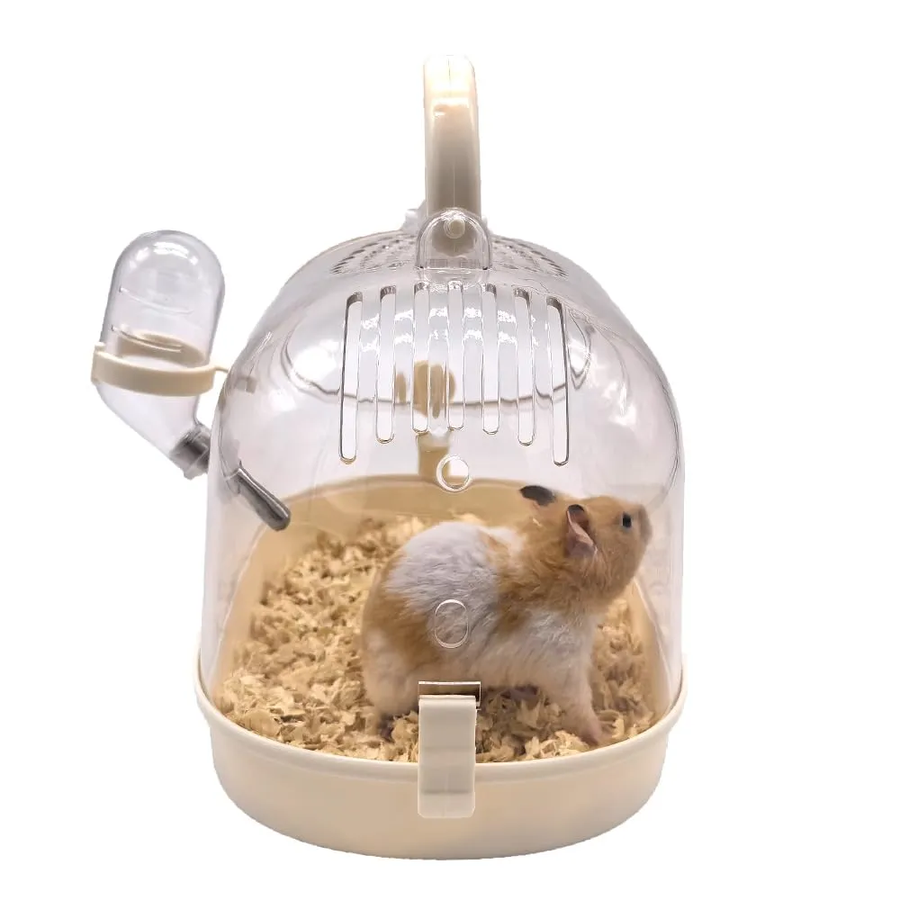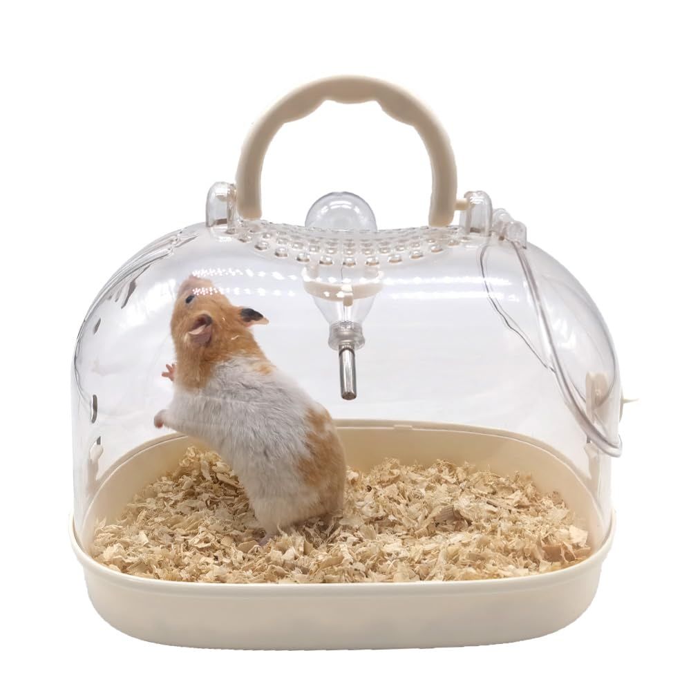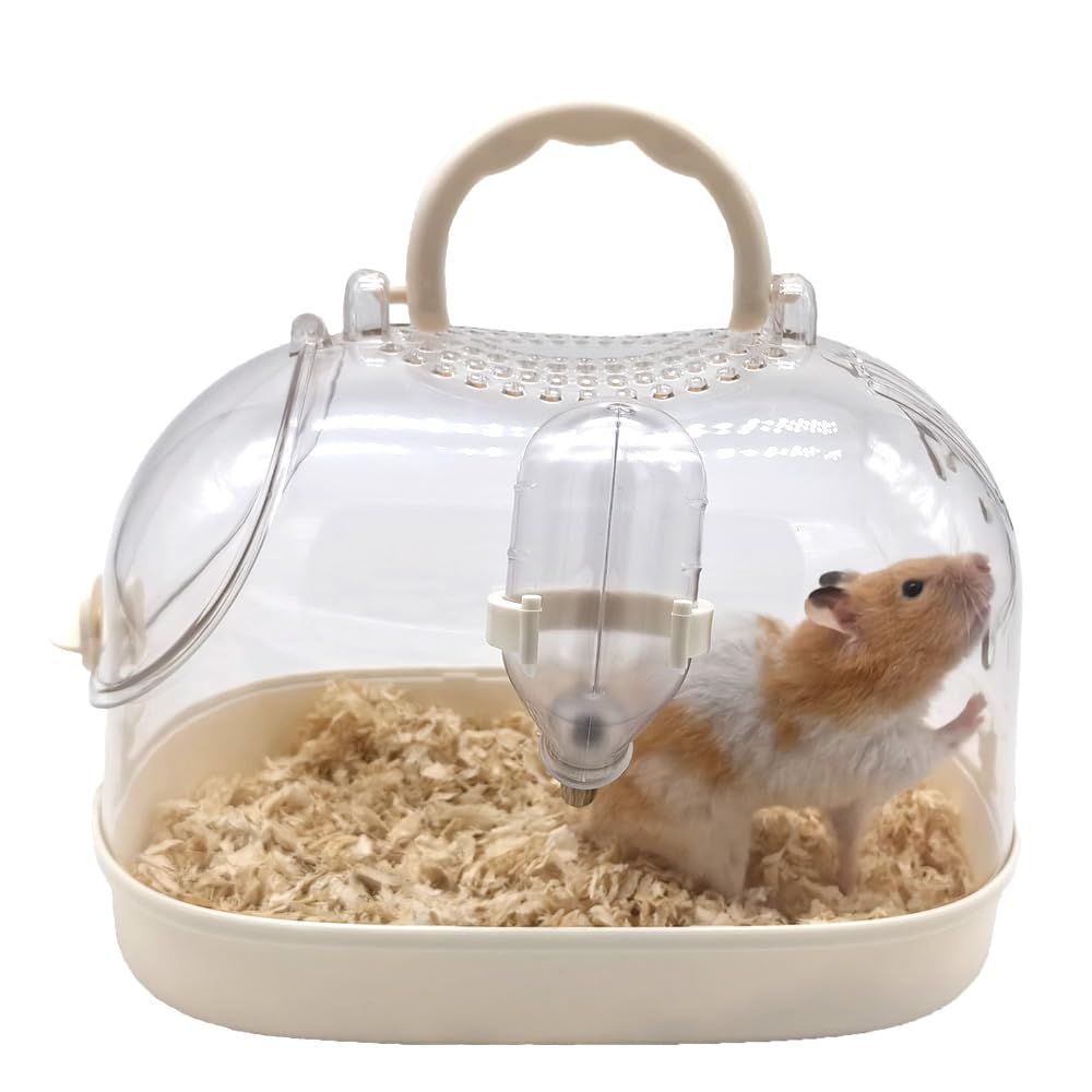 ハムスター キャリーケース 透明 小動物 キャリー ケージ 大きめ ジャンガリアン キンクマ お出かけ 持ち運び プラケース 移動 帰省 通院(給水器付き)