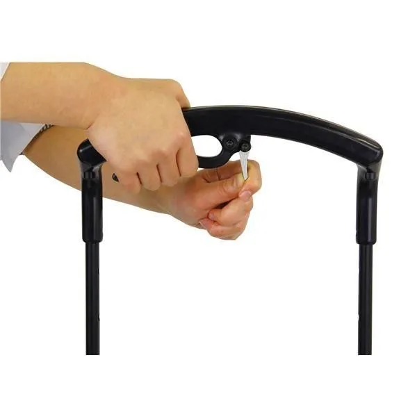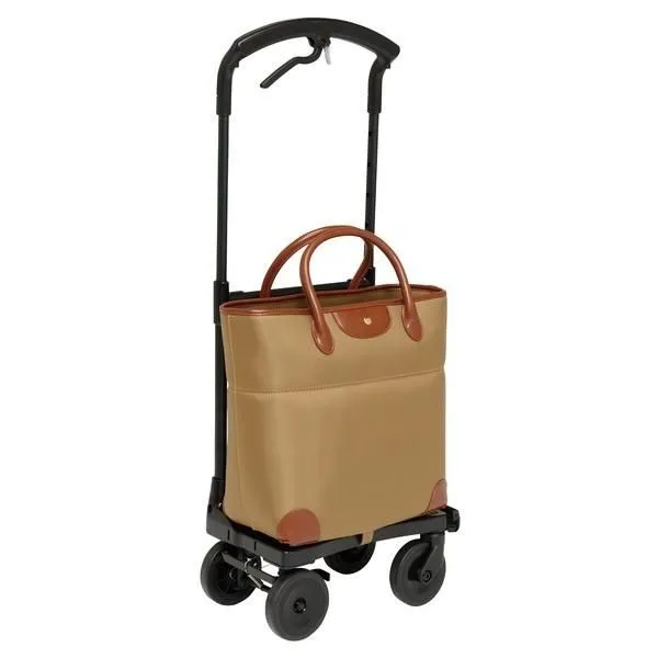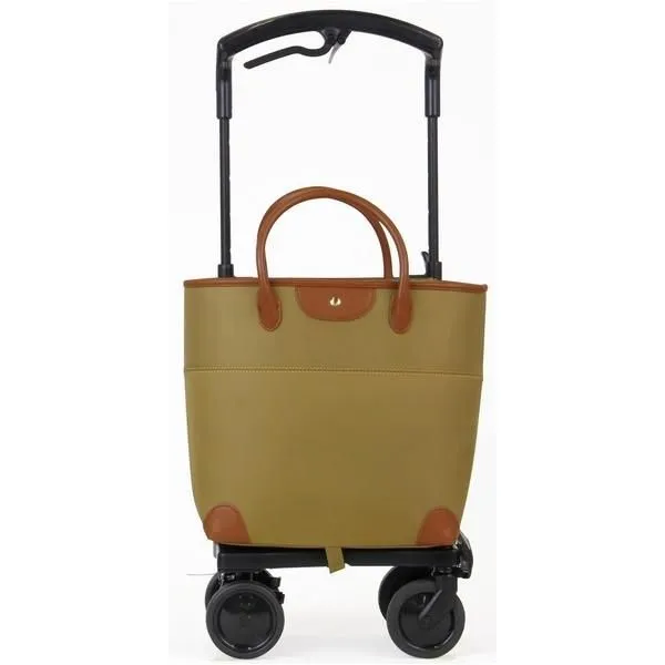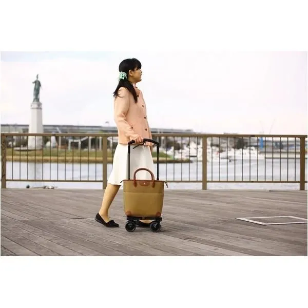 【おとなりカート ブレーキ付トートタイプ 右用】はおしゃれで取り外し可能なバッグの付いた横押しタイプのカート。手元でブレーキと駐車ロックが操作できるので坂道や電車内で勝手に進んでしまうことがありません。前輪キャスターはレバーの上げ・下げで直進・回転の調整が可能。約10cmのタイヤは全体のデザインを損なわずに快適な走行を約束。