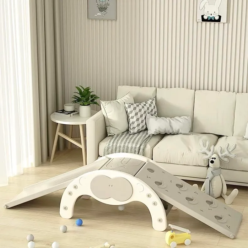 【クライミングウォール & スライダー】お子さまの筋力だけでなく、バランス感覚や柔軟性を養うことができるクライミングウォール。頂上に到達する達成感が自尊心を育むサポートとなります。また、ボードを回転させると、楽しいすべり台に早変わり!