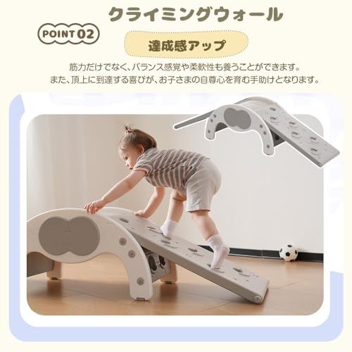【自分の力で登り降りできる設計】お子さまが室内でも身体を動かして楽しめるように開発され、自立心と運動能力の向上をサポートします。集中力を養い、四肢の協調性やバランス感覚を鍛える効果も期待できます。