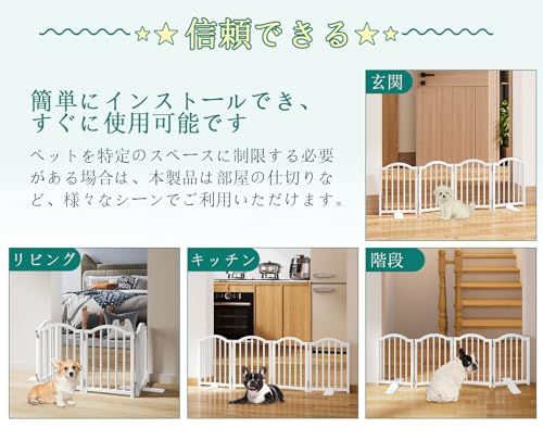 【使いやすさと収納の簡単さ】: この犬用ゲートは、革新的な折りたたみ式および拡張可能なデザインを特徴としており、壁やドアに穴を開ける必要がなく、家庭環境を保護します。サイドパネルを左右に広げるだけで、必要な場所に簡単に設置できます。使用しないときは、ベッドやソファの下、またはドアの後ろにコンパクトに折りたたんで素早く収納でき、便利で省スペースのメリットを提供します。