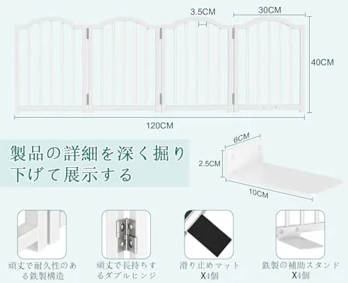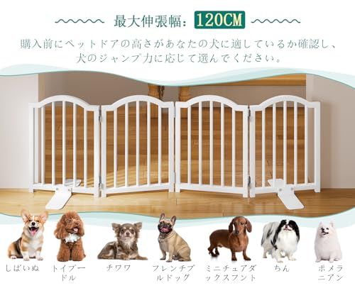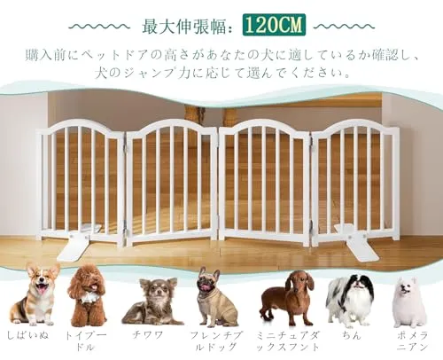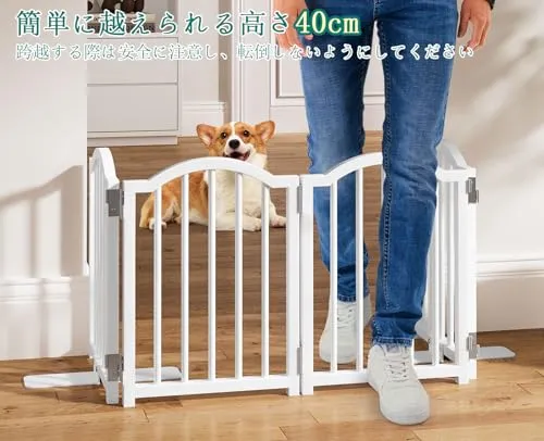 【子犬に最適】: 開口サイズ: 長さ120cm、高さ40cm。このペットゲートは、便利なまたぎ越えデザインで、小さなペットの動きを効果的に制限しつつ、大人や高齢者が簡単に通り抜けられるように設計されています。バー間の間隔は3.5cmで、バーの間隔が狭いため、小型犬が隙間を通り抜けるのを効果的に防ぎます。子犬、高齢のペット、またはジャンプ力の低いペットに最適です。