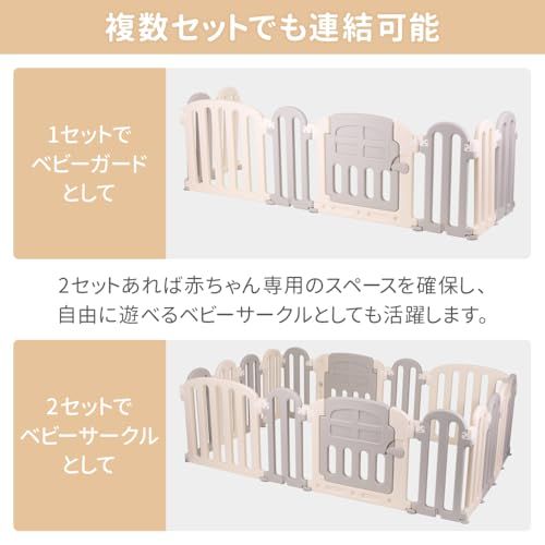 【複数セットでも連結可能】1セットだけでも玄関や棚などへの侵入を防ぐガードやペットフェンスとしてご使用いただけますが、2セットあれば赤ちゃん専用のスペースを確保し、自由に遊べるベビーサークルとしても活躍します。