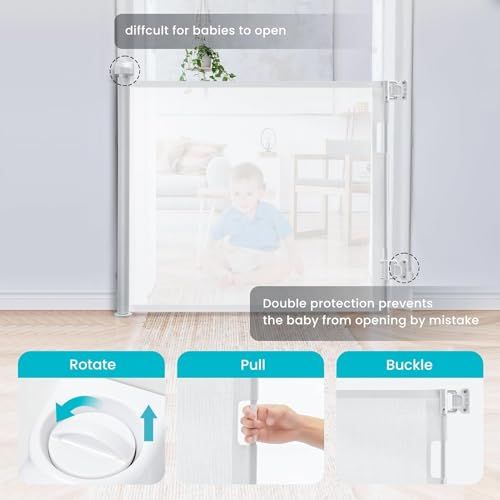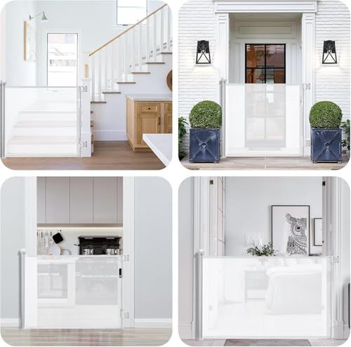 ベビーゲート ロール 巻き取り 安全ゲート 階段上 取付幅150cmまで 犬 猫 猫脱走防止フェンス 高さ86cm (ホワイト, 150cm)☆彡