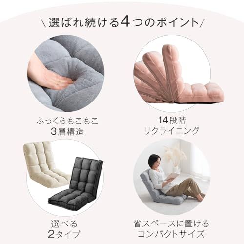 【スタッフのおすすめポイント!】 ・選べる2タイプ ふんわりソフトなマイヤー生地タイプ おしゃれなパイピング付き!ダリアン生地タイプ ・もこもこキルティングで座り心地 ・大人かわいいニュアンスカラー ・身体を包み込む3層構造 ・リクライニング14段階 ・折り畳み収納OK ・高い品質と耐久力を誇る日本メーカーのギア使用 ・2万回の衝撃テストに合格 ・品質保証の証 ISO認証工場で生産