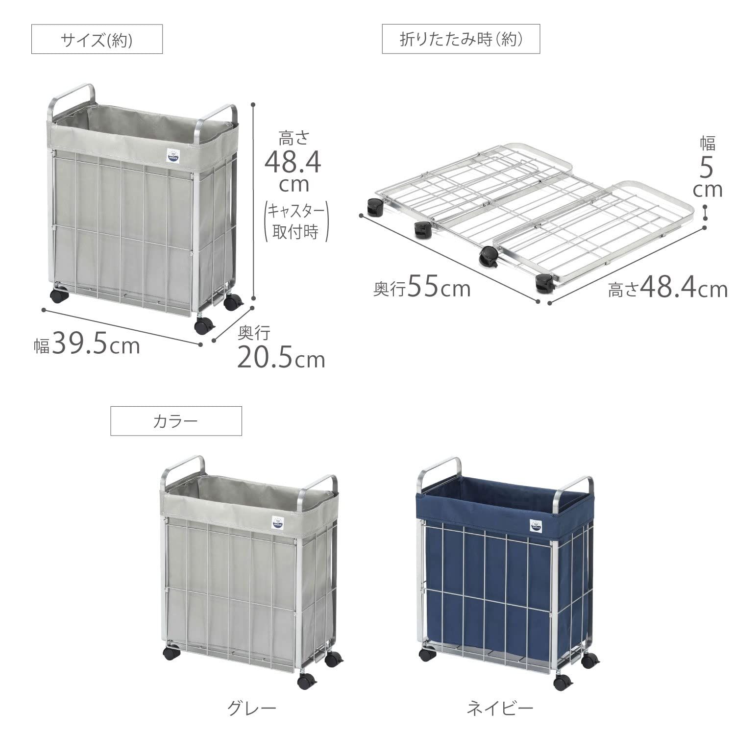 幅39.5×奥行き20.5×高さ48.4cm(キャスター付き) / 収納部内寸:幅38×奥行19×高さ37.5cm / 折りたたみ時:幅5×奥行55×高さ48.4cm