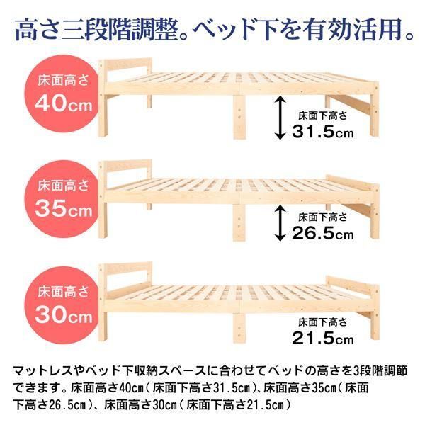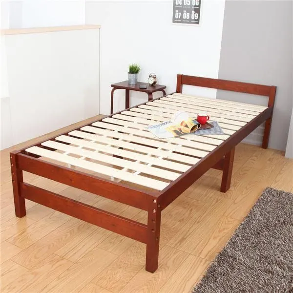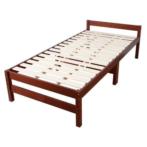 商品名:天然木 すのこベッド シングル (フレームのみ) ブラウン 幅98cm 高さ調節可 ベッドフレーム 寝具 〔組立品〕