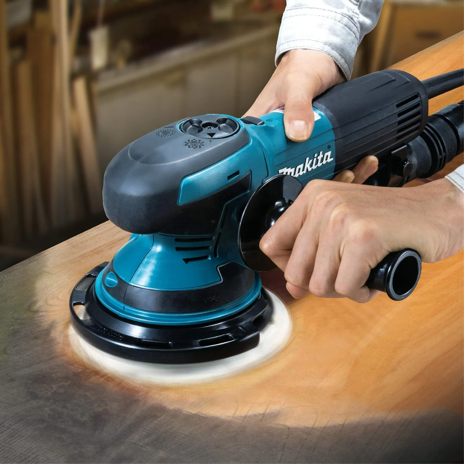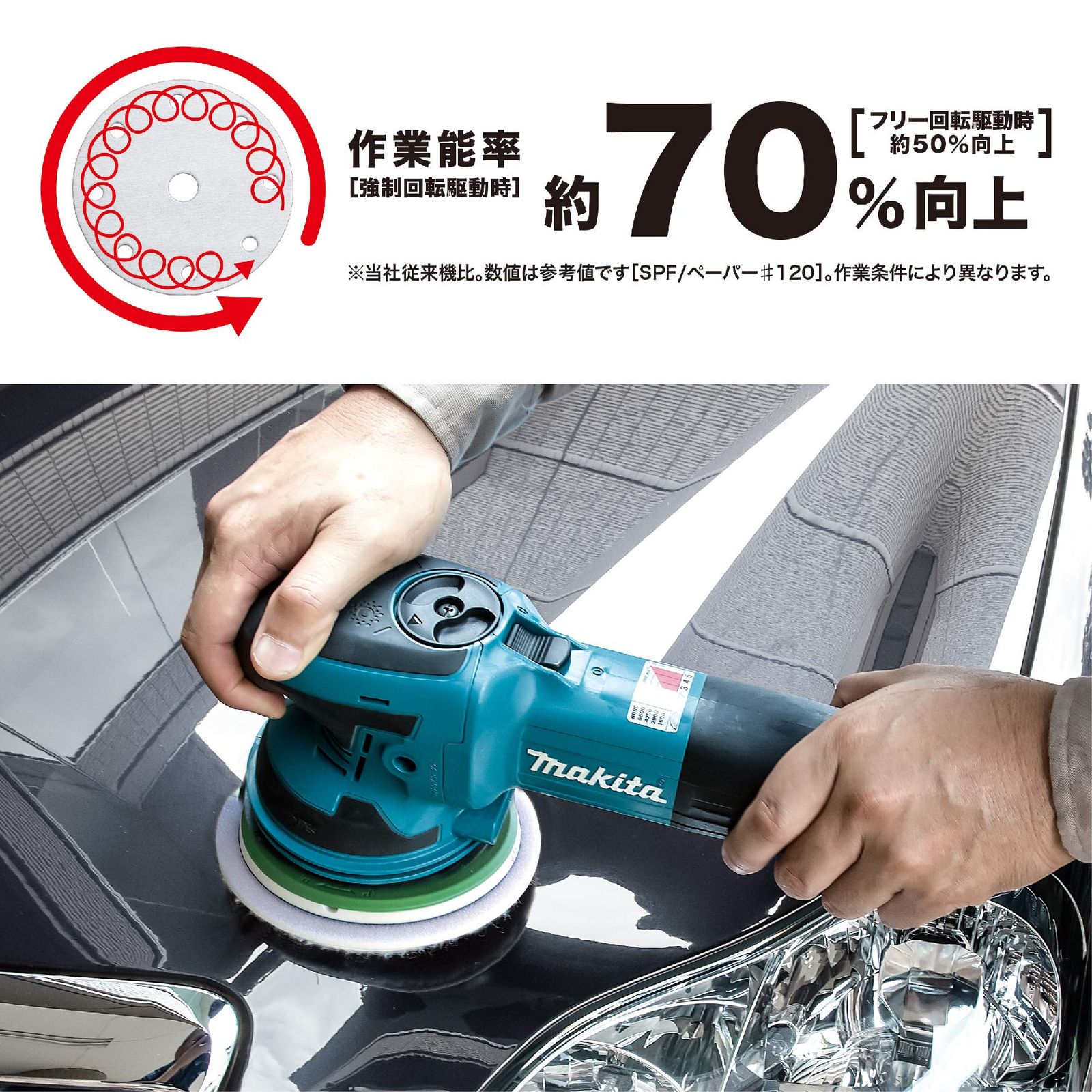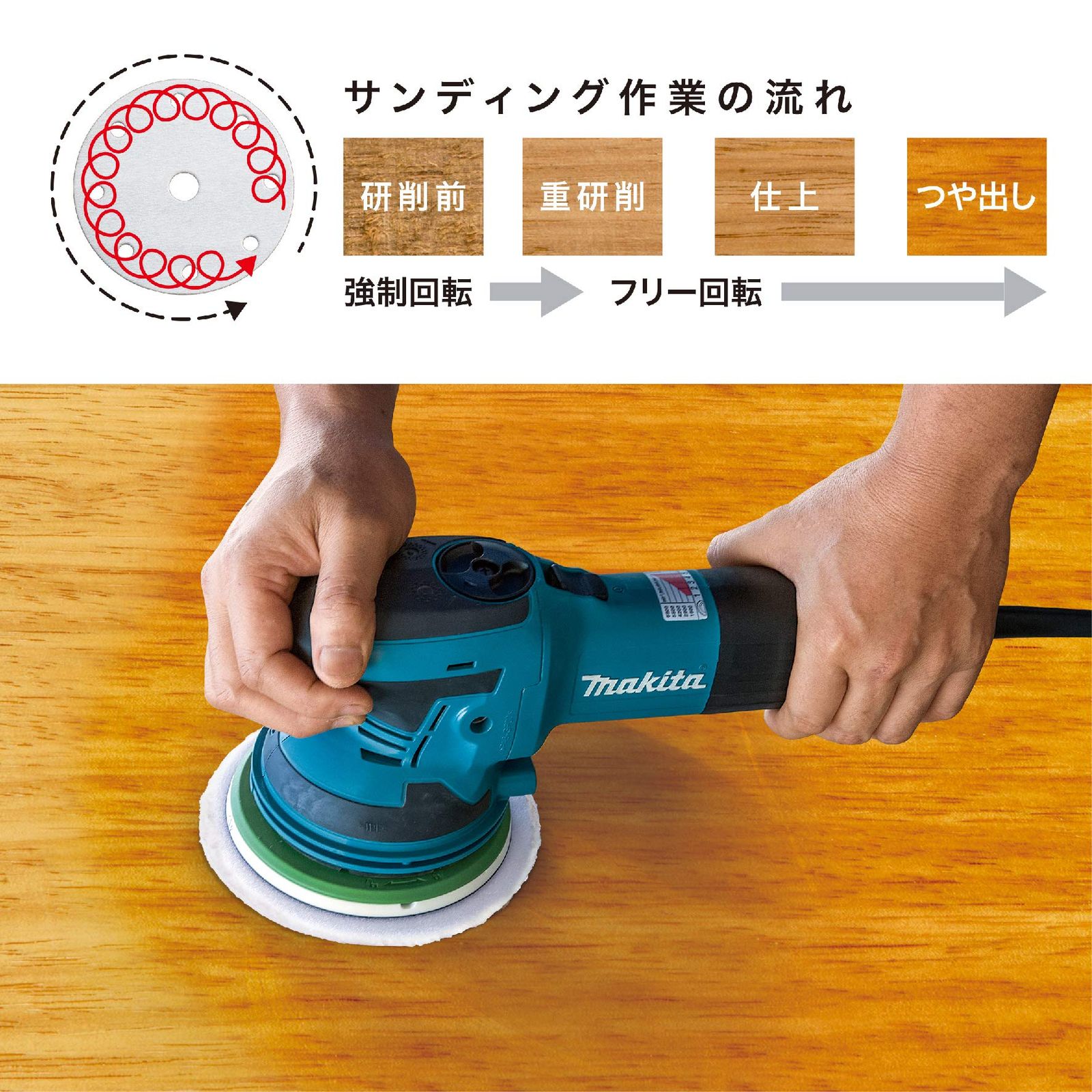 「フリー回転駆動」で美しく。木工つや出し等の仕上研削に