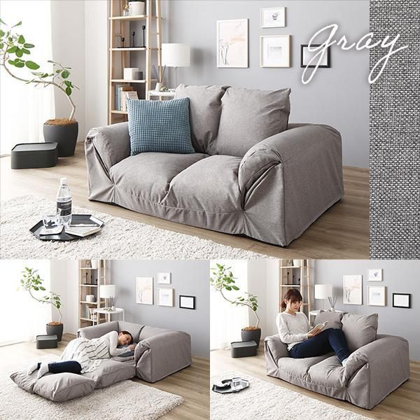 商品名:3WAY ソファーベッド/ローソファー 〔グレー〕肘付き 日本製 コンパクト 1人暮らし おしゃれ
