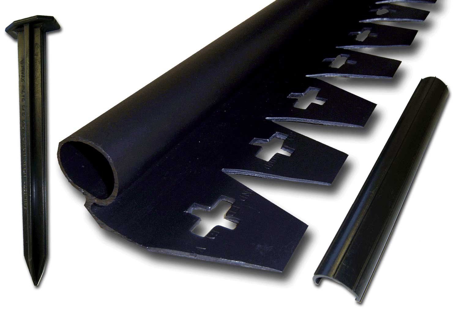 「リサイクルエッジング ブロック見切」はインターロッキングなどのブロックが片落ちしないようにガイドします。又、フレキシブルな為、様々な曲線に仕上げることが