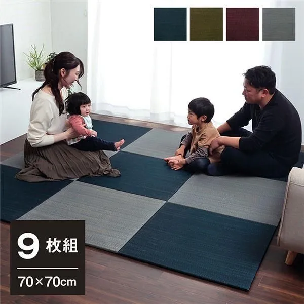 商品名:い草 置き畳/ユニット畳 〔約70×70×1.5cm ネイビー 9枚組〕 無地調 抗菌 防臭 消臭 調湿 縁無し 防滑 〔リビング〕