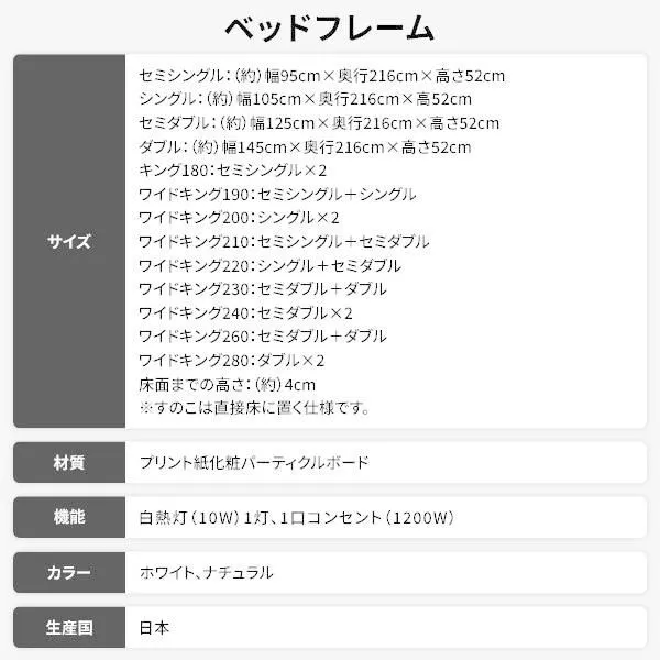 商品名:ベッド 日本製 低床 連結 ロータイプ 木製 照明付き 棚付き コンセント付き シンプル モダン ナチュラル ワイドキング230(SS+D) 日本製ポケットコイルマッ...