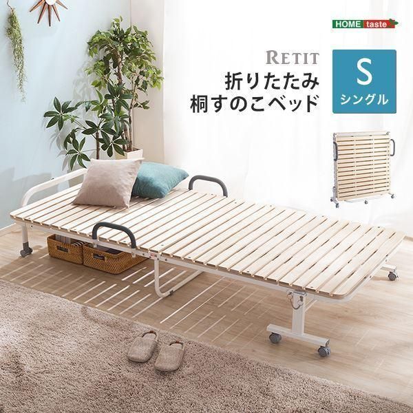 商品名:すのこベッド 208×99×39cm シングル 折りたたみ式 キャスター付き 手すり付き 木製 桐 収納便利 ベッドルーム 寝室 組立品