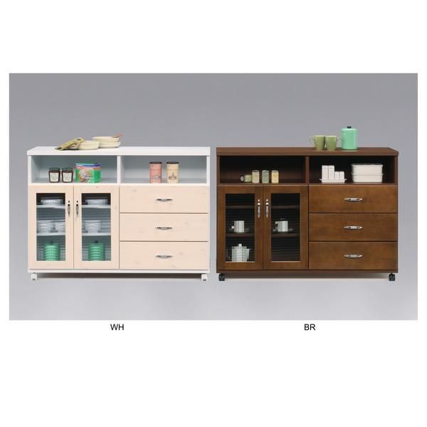 商品名:キッチンカウンター キッチン収納 幅117cm ホワイト 日本製 木製 キャスター付き カントリー調 キッチン 台所 完成品