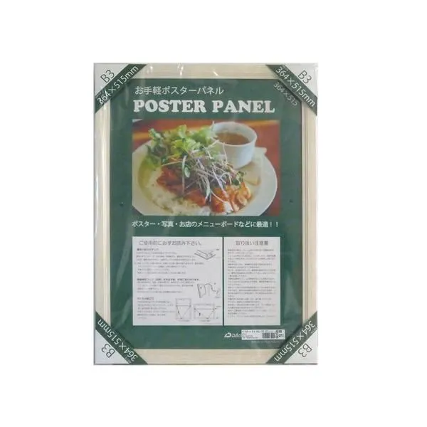 温かみのある色調のB3(364×515mm)サイズの木製ポスターパネル。