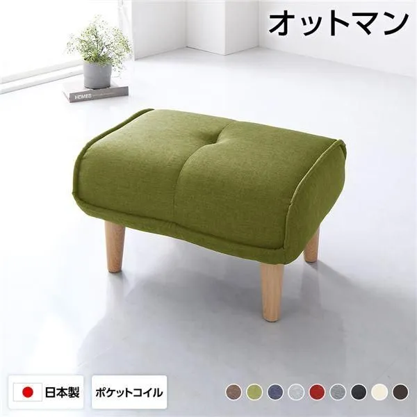 商品名:日本製 オットマン/スツール 〔ファブリック グリーン〕 脚部:ナチュラル 約幅59cm ゆったりサイズ シンプル 脚部取り付け