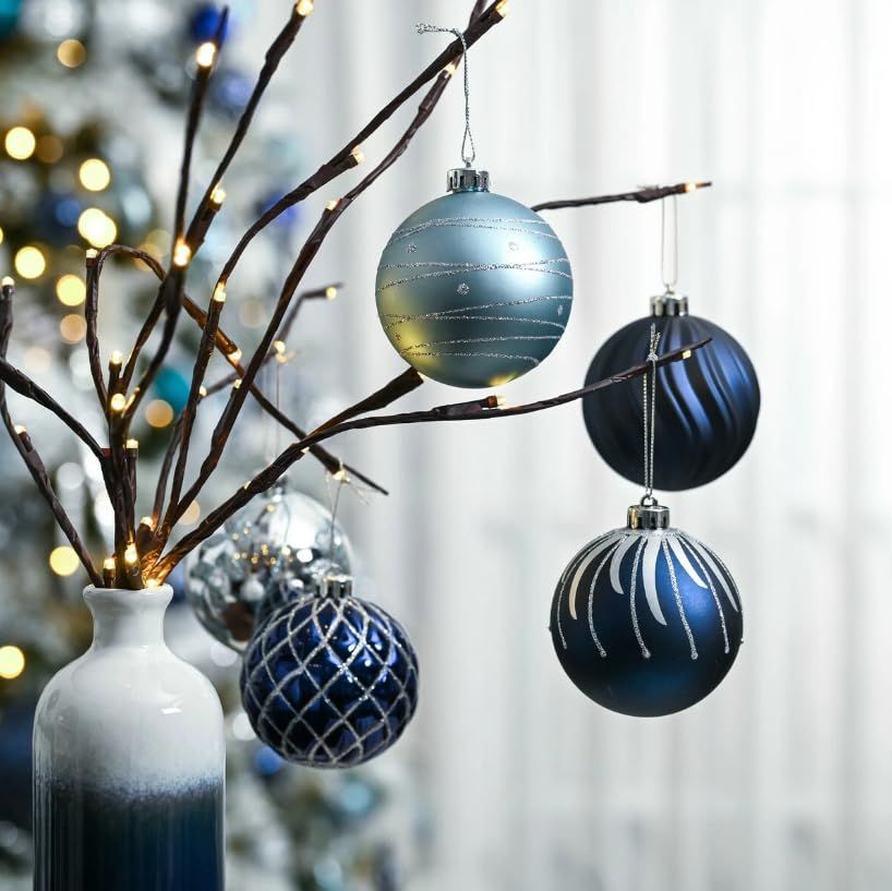 Valery Madelyn クリスマス オーナメント クリスマス ツリー飾り 北欧風 大きめ 8cm 16個入り シルバー ブルー 銀青 青い クリスマス ボール オーナメント おしゃれ ゴージャス カラー人気 流行 クリスマス ツリー 飾り 飾り付け