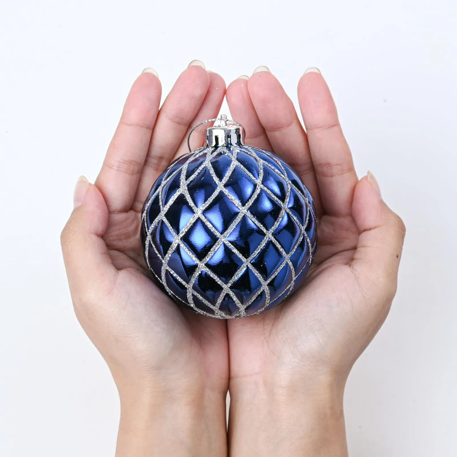 【色合わせ】クリスマスボールオーナメントは3つの独特な表面処理(光沢、マット、グリッター)を施されます。表面には異なる精緻なテクスチャがあります。それぞれのボールは丹念に吹き込まれ、手作業で塗装されています。ボールは海のシルバーとブルーといった淡い色合いが多く、クリスマスツリーの深いグリーンにお互いに美しく映えます。