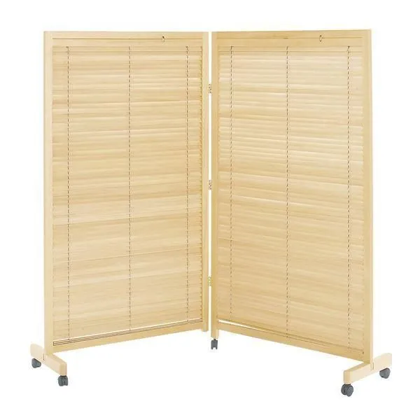 商品名:和風 衝立/パーテーション 2連 〔ナチュラル〕 幅850×奥行370×高さ1550mm×1枚 木製 キャスター付き 組立品 〔リビング 和室〕