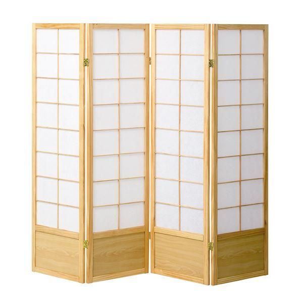 商品名:和風衝立/パーテーション 4連 〔ナチュラル〕 幅450×奥行20×高さ1500mm×4枚 木製 スチール 不織布 完成品 〔和室 リビング〕