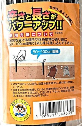高濃度カプサイシン配合の植物由来スティックが、味覚・嗅覚を強烈に刺激し、近寄りにくい環境を作ります。