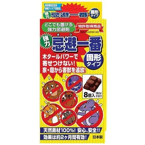イヌ、ネコ、ネズミ、ヘビ、イタチ、キツネ、タヌキ、コウモリ、モグラ、シカ、イノシシ、アライグマ、ムカデなどを嫌な臭いで寄せ付けません。
