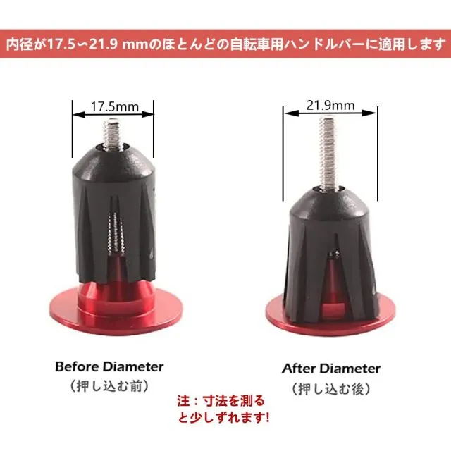 【取り付け簡単】取り付けと取り外しが簡単です,自転車バーエンドプラグはプラスチック製のインサートをハンドルバーに差し込むようにネジを締め,ハンドルバーを差し込みます。