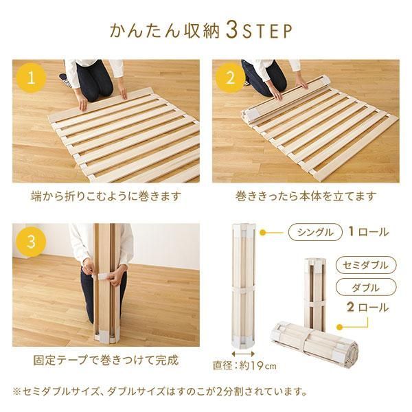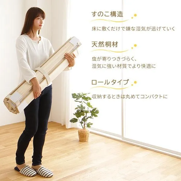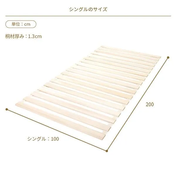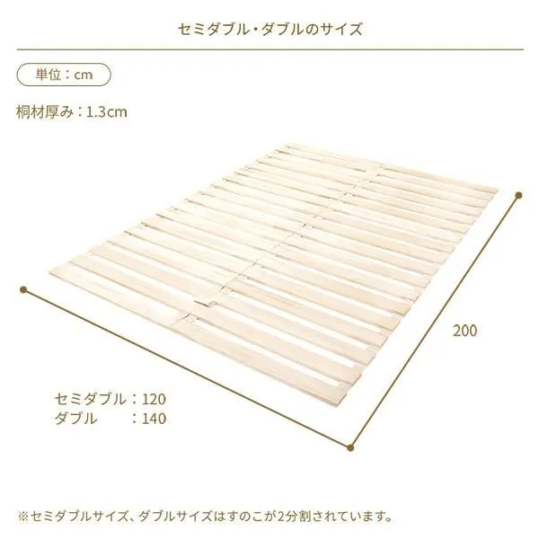 商品名:ロール式 桐 すのこ ベッド ダブル ベッドフレームのみ 木製 天然木 軽量 通気性 連結可 折りたたみ