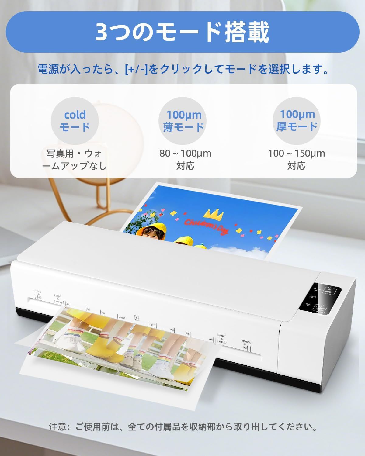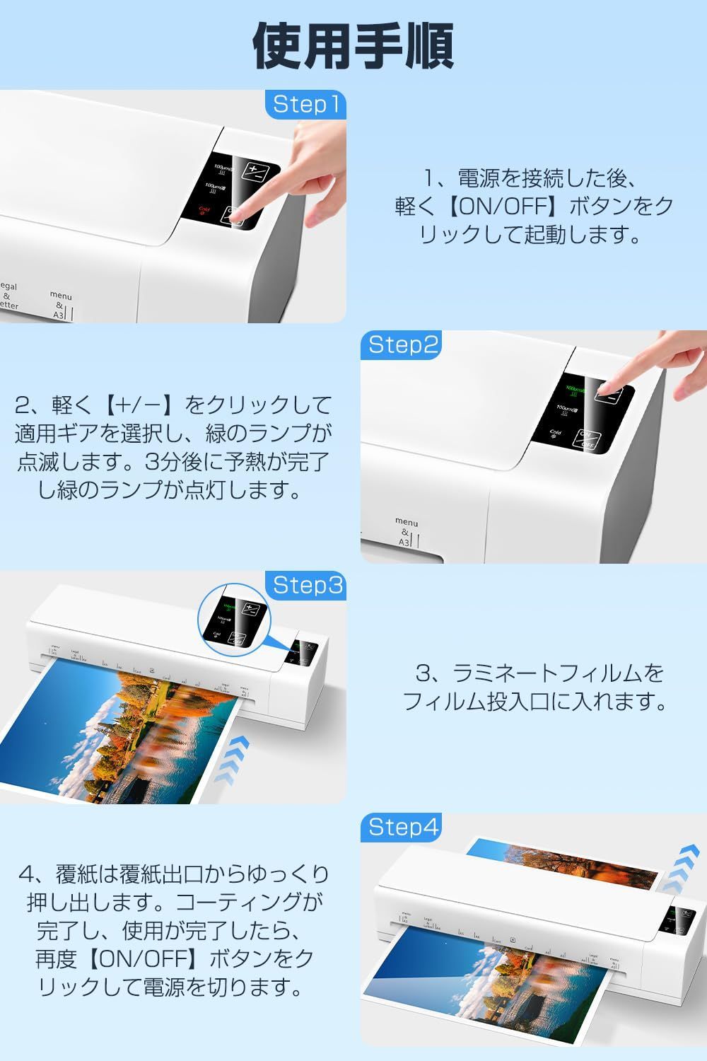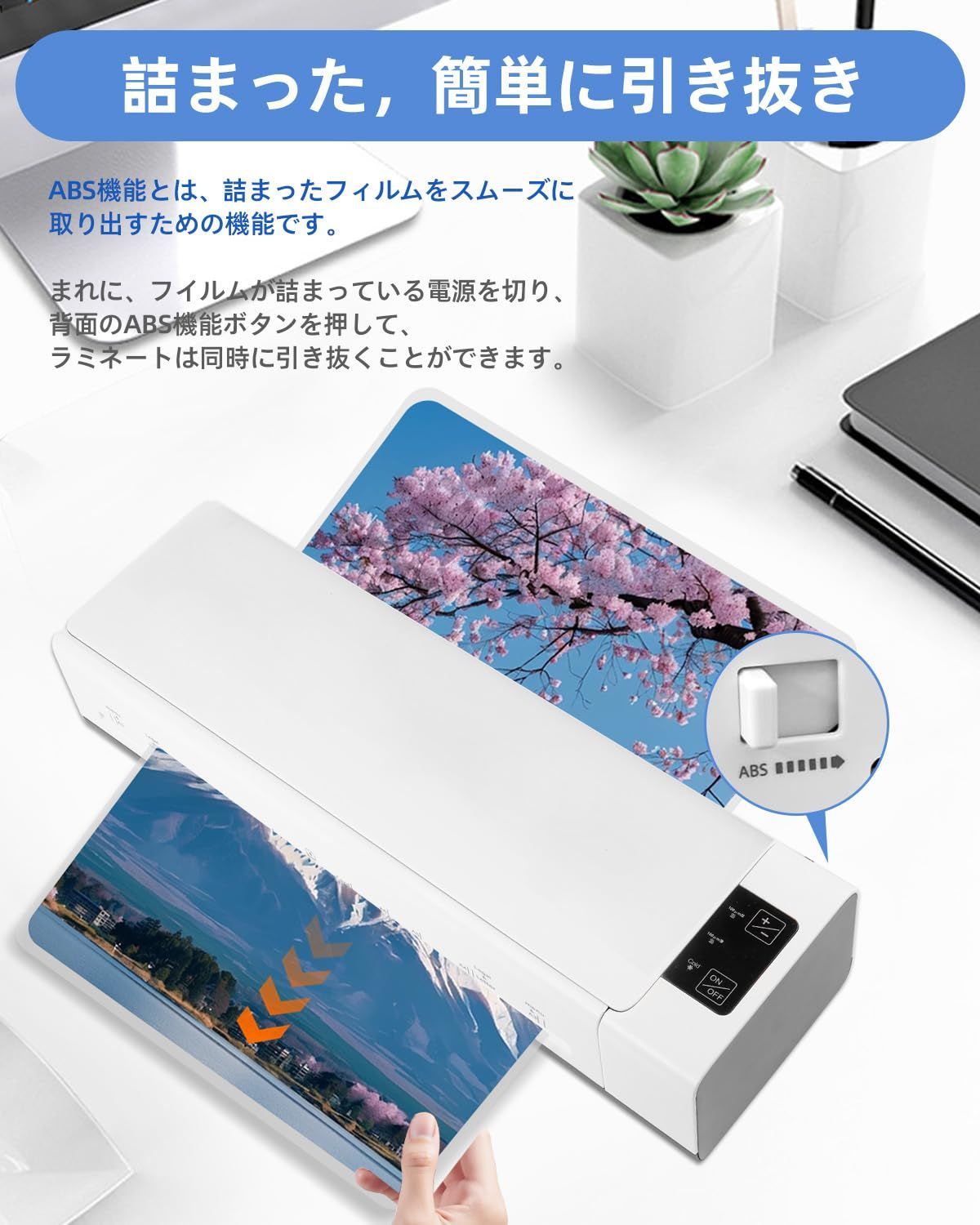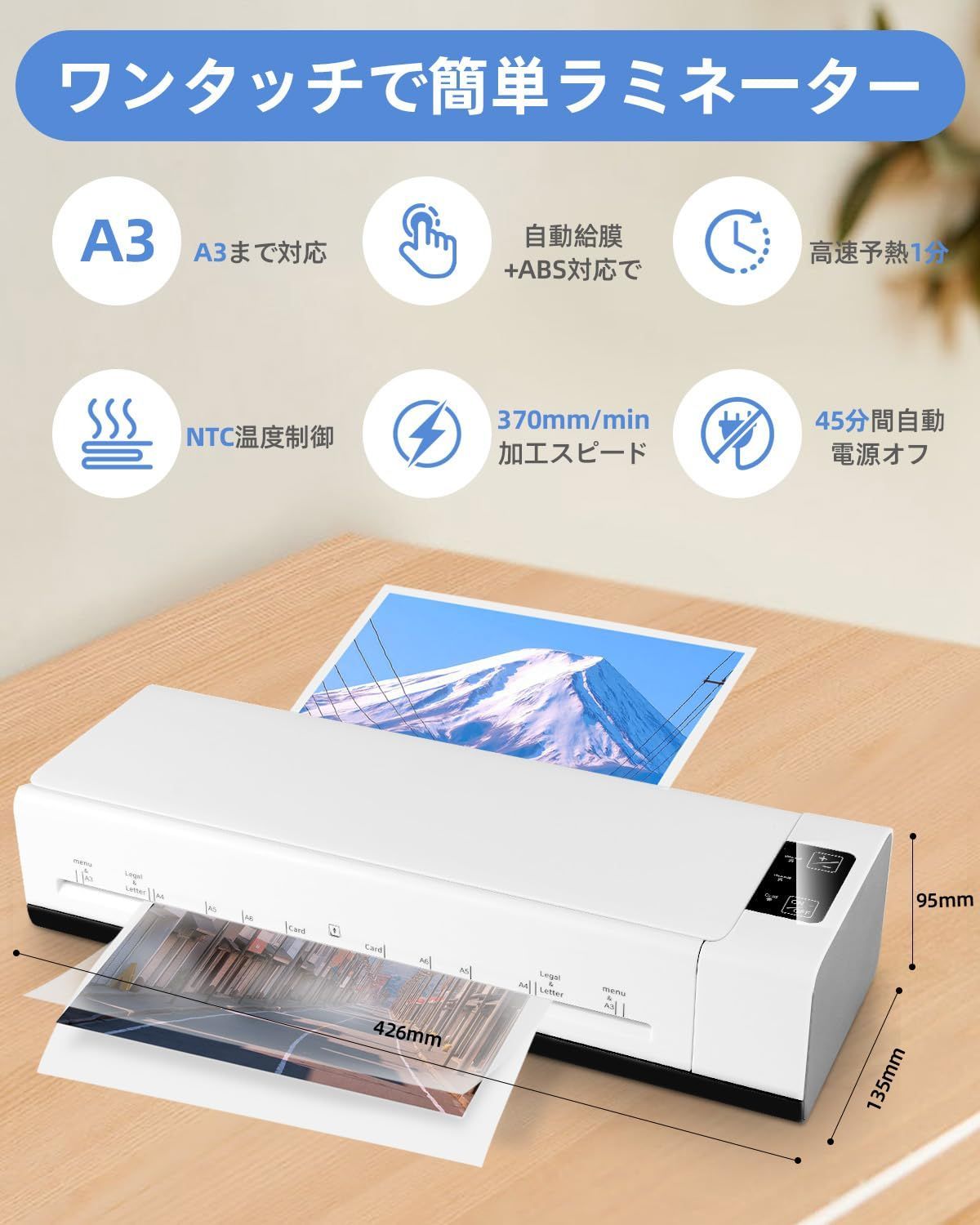 【三重の安心安全設計:NCT精密温度制御 & 45分自動オフ & ABS保護】NCT智能温度制御が過熱やムラを防ぎ、素材を傷めません。45分自動オフでうっかり消し忘れも万全。お子様がいるご家庭でも、うっかり消し忘れても安心してお使いいただけます。最大の特徴はABS保護機能:紙詰まりや誤操作、急な停電時も、ボタン一つで安全に停止・書類取出しが可能。機械と書類をダブルで守ります。