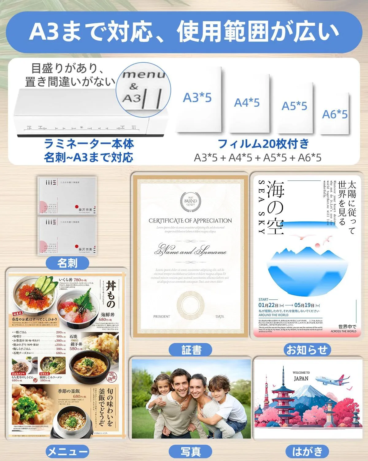 【プロ仕様の美しさを実現:多ローラー構造で気泡&シワなし】内部の多ローラー構造により、圧力が均一にかかり、初心者の方でもプロのように完璧な平坦さを実現します。大切な証明書も、思い出の写真も、気泡やシワの心配なく、美しく鮮明にラミネートできます。