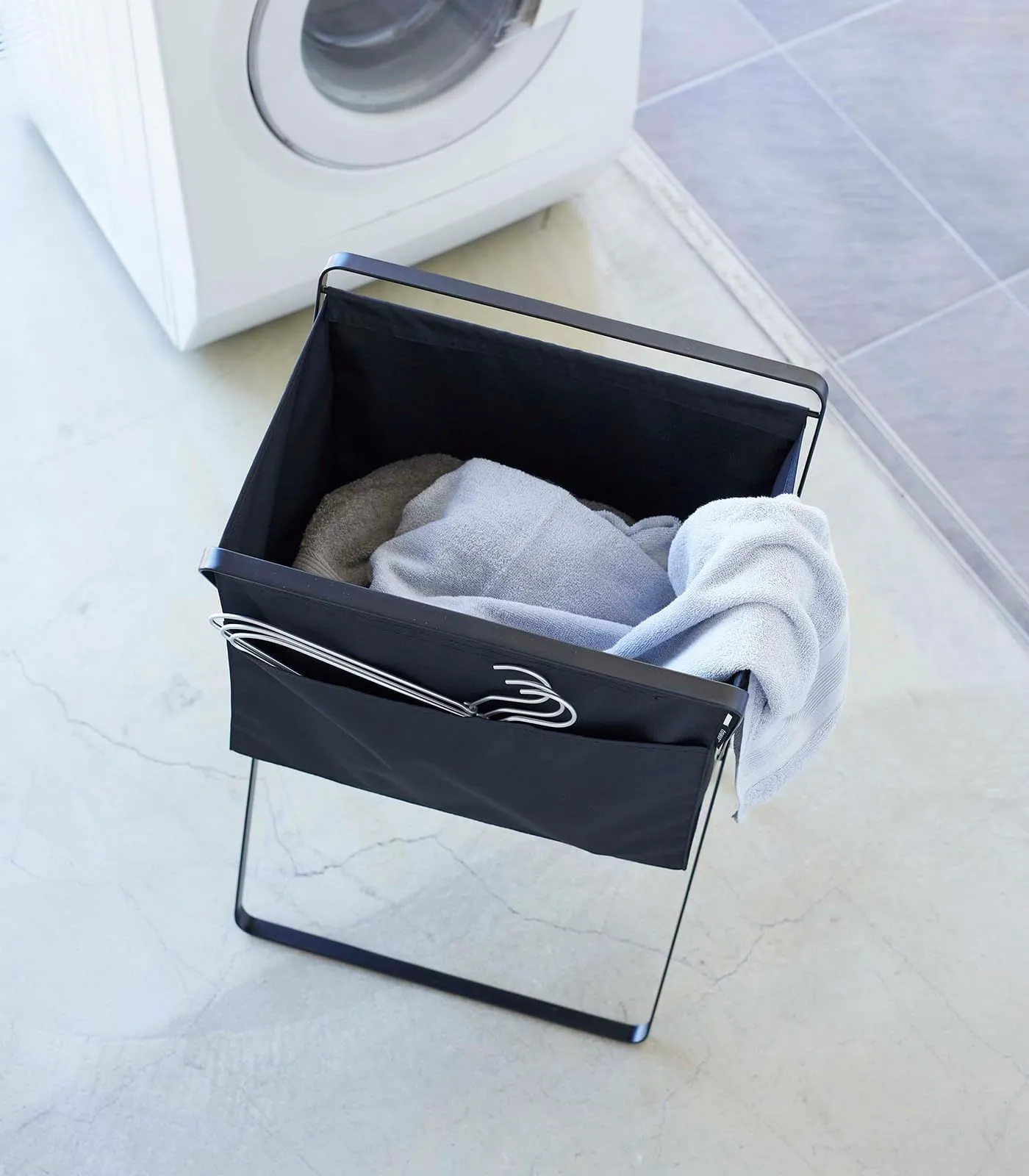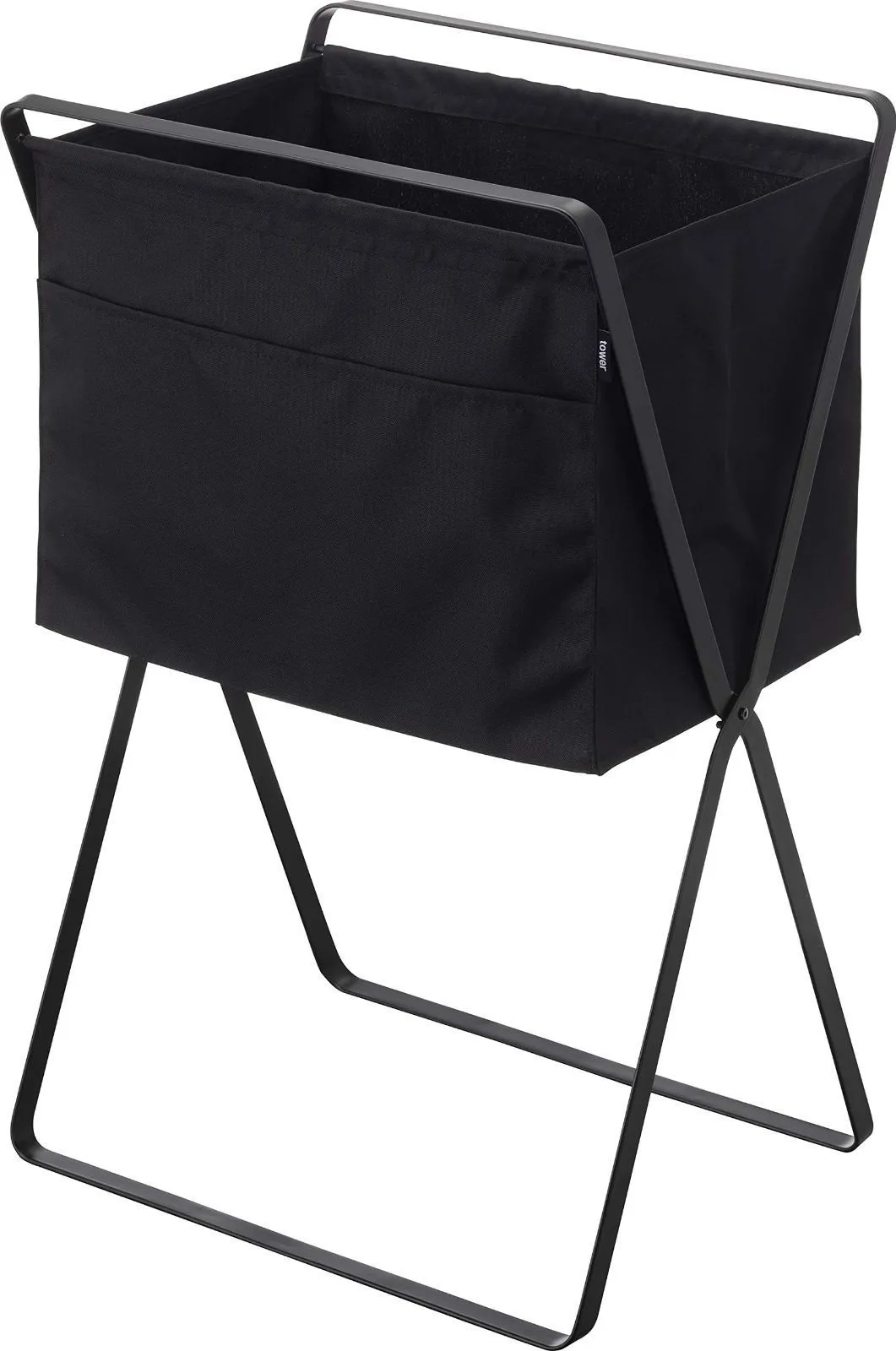 山崎実業(Yamazaki) 折り畳み 高床式 ランドリーバスケット ブラック 約W46XD35.5XH70cm (使用時) タワー tower ランドリーバッグ 折りたたみ 洗濯カゴ 5662