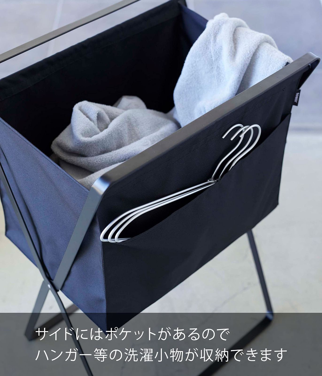 サイドにはポケットがついているのでハンガー等の洗濯小物を収納できます。