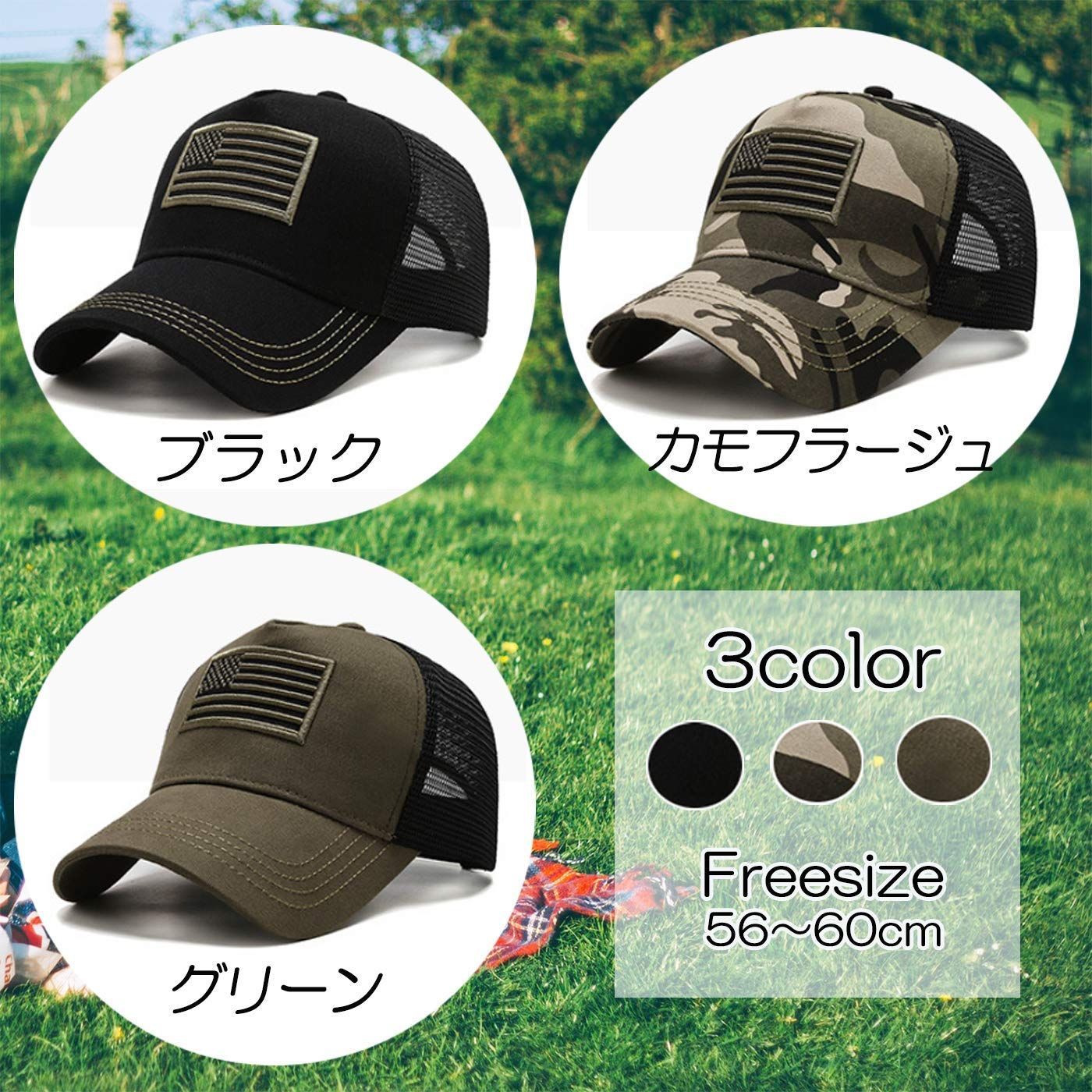 [One Drop] キャップ ミリタリー メンズ メッシュ 迷彩柄 カモフラ アウトドア カジュアル オシャレ 帽子 野球帽
