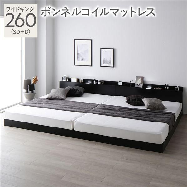 商品名:ベッド ワイドキング 260 SD+D ボンネルコイルマットレス付 ブラック 宮付 連結ベッド すのこベッド