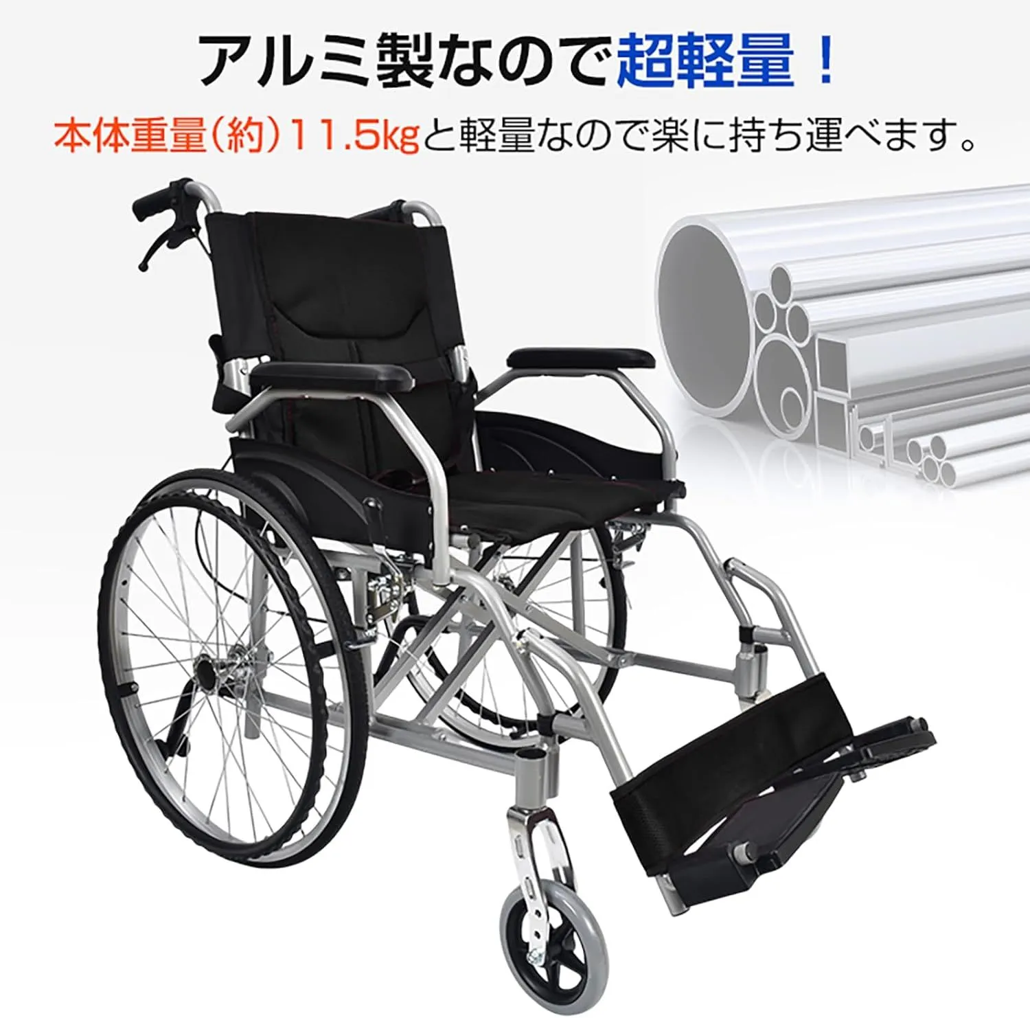 【軽量/丈夫なアルミフレーム】軽量/丈夫なアルミフレームを採用した自走式車椅子です。