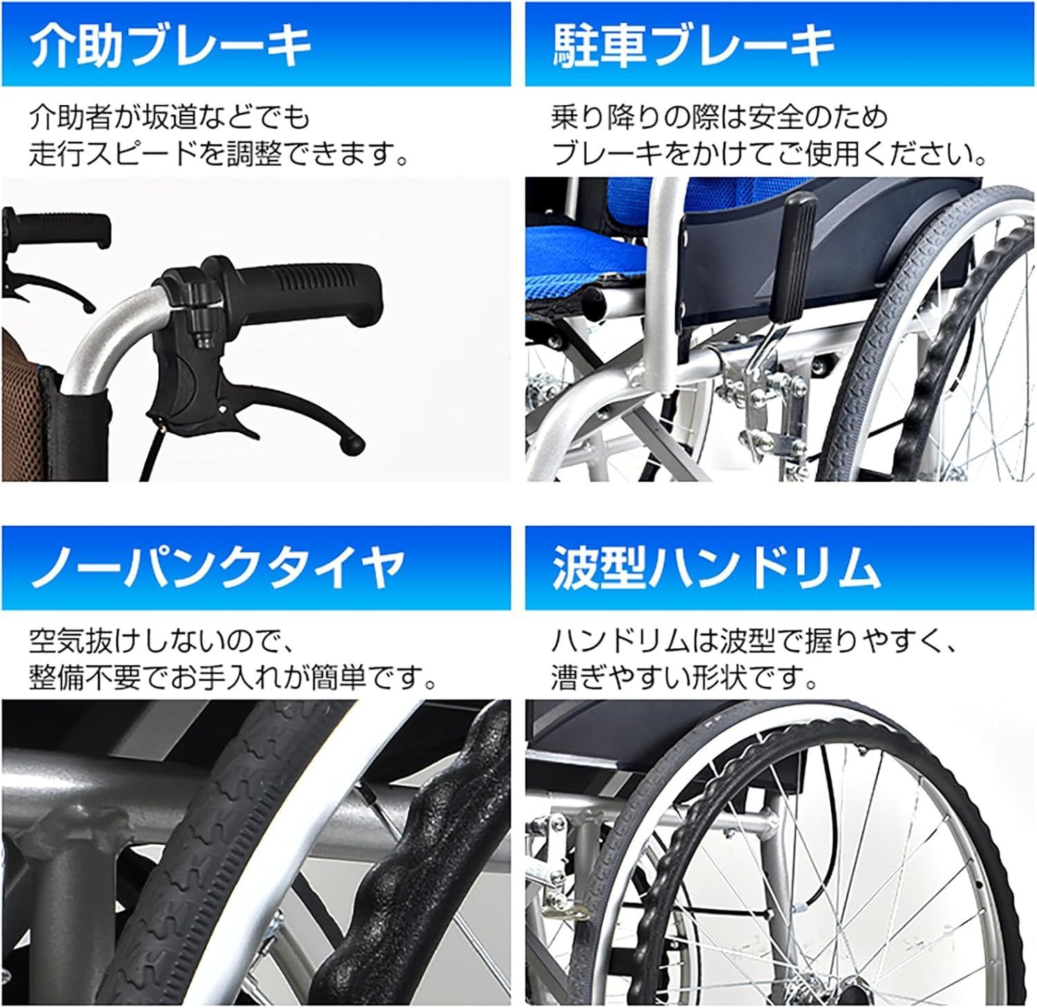 必要な機能をすべて備えた自走式および補助式車椅子