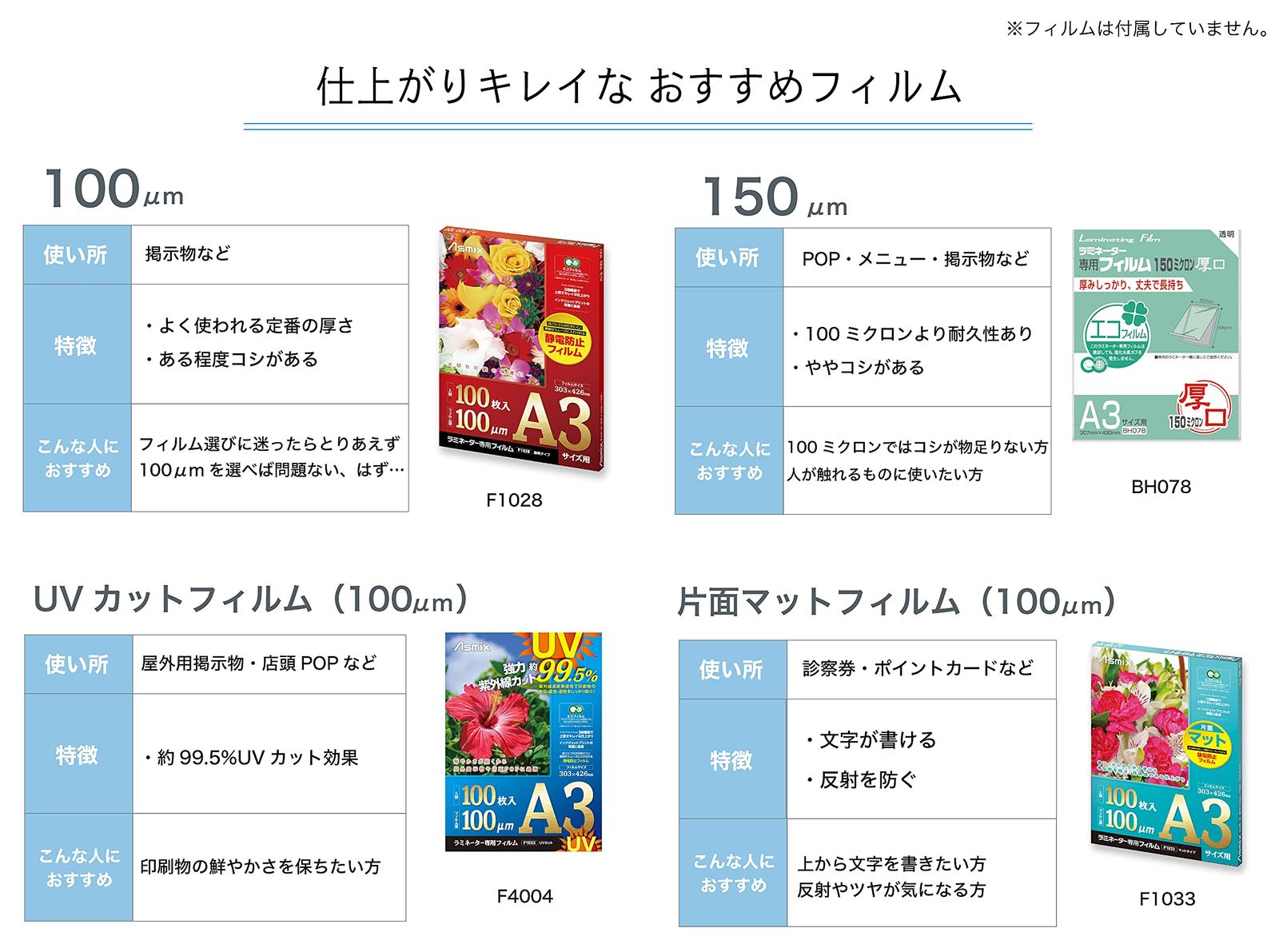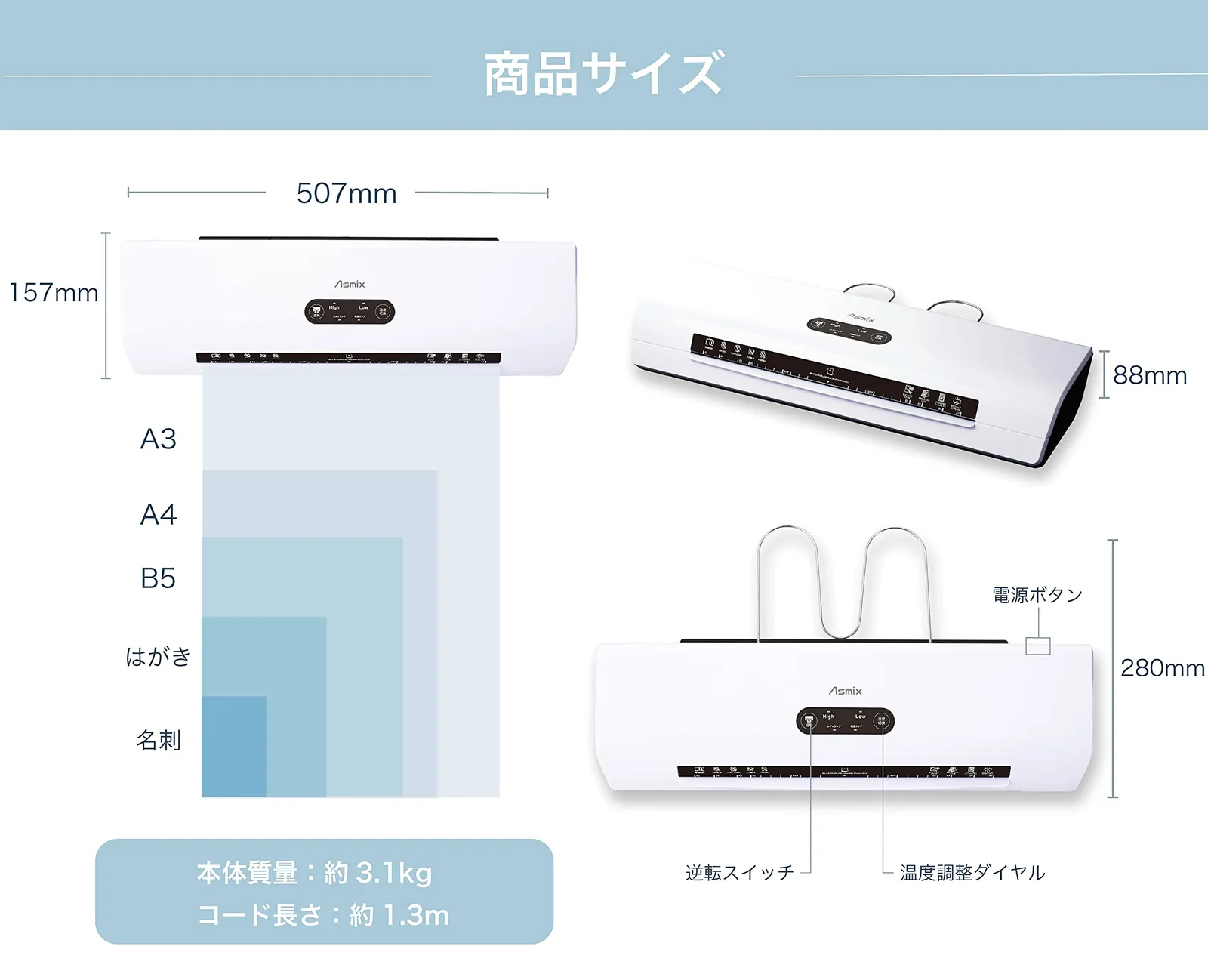 対応フィルム厚は100/150μ。温度切り替えスイッチあり。