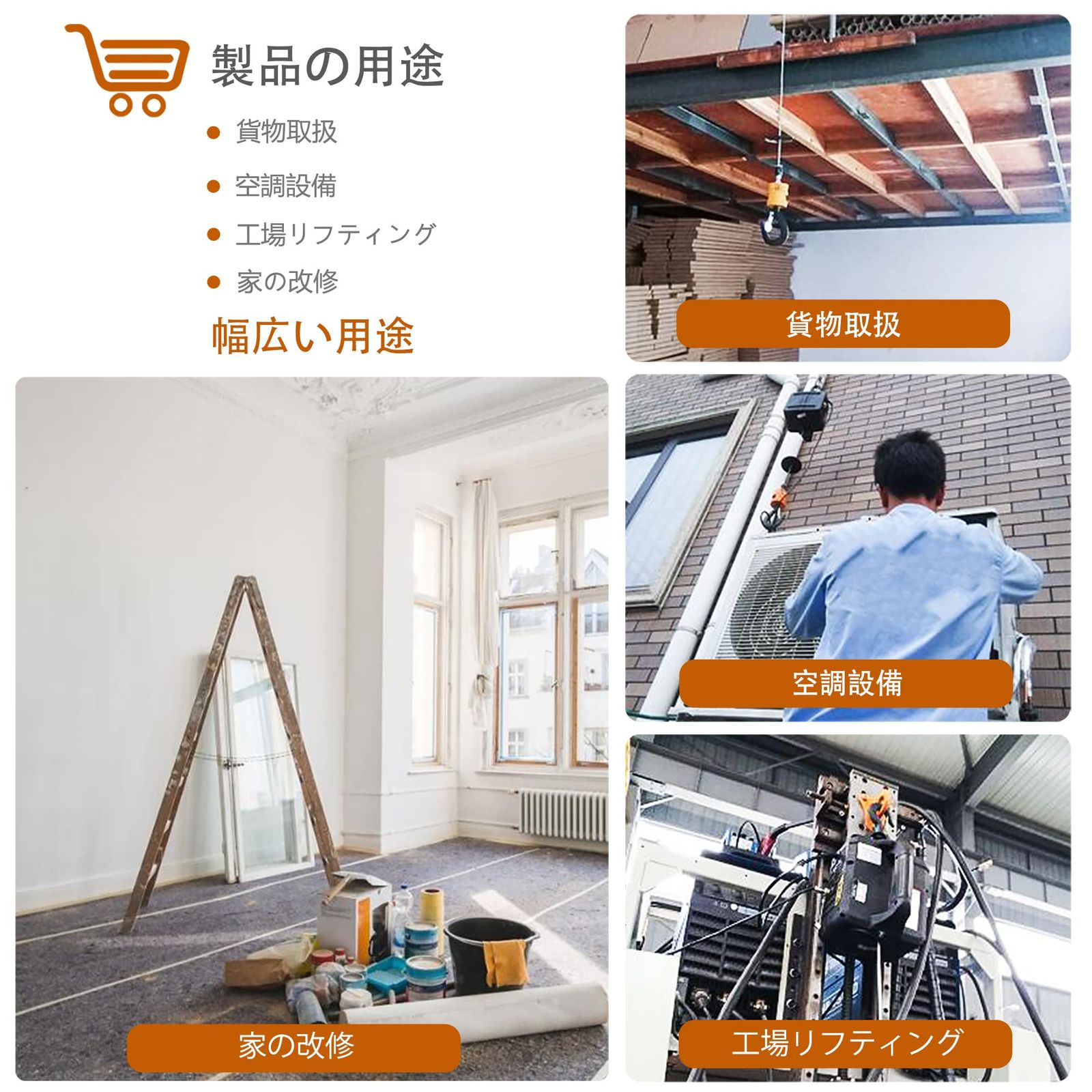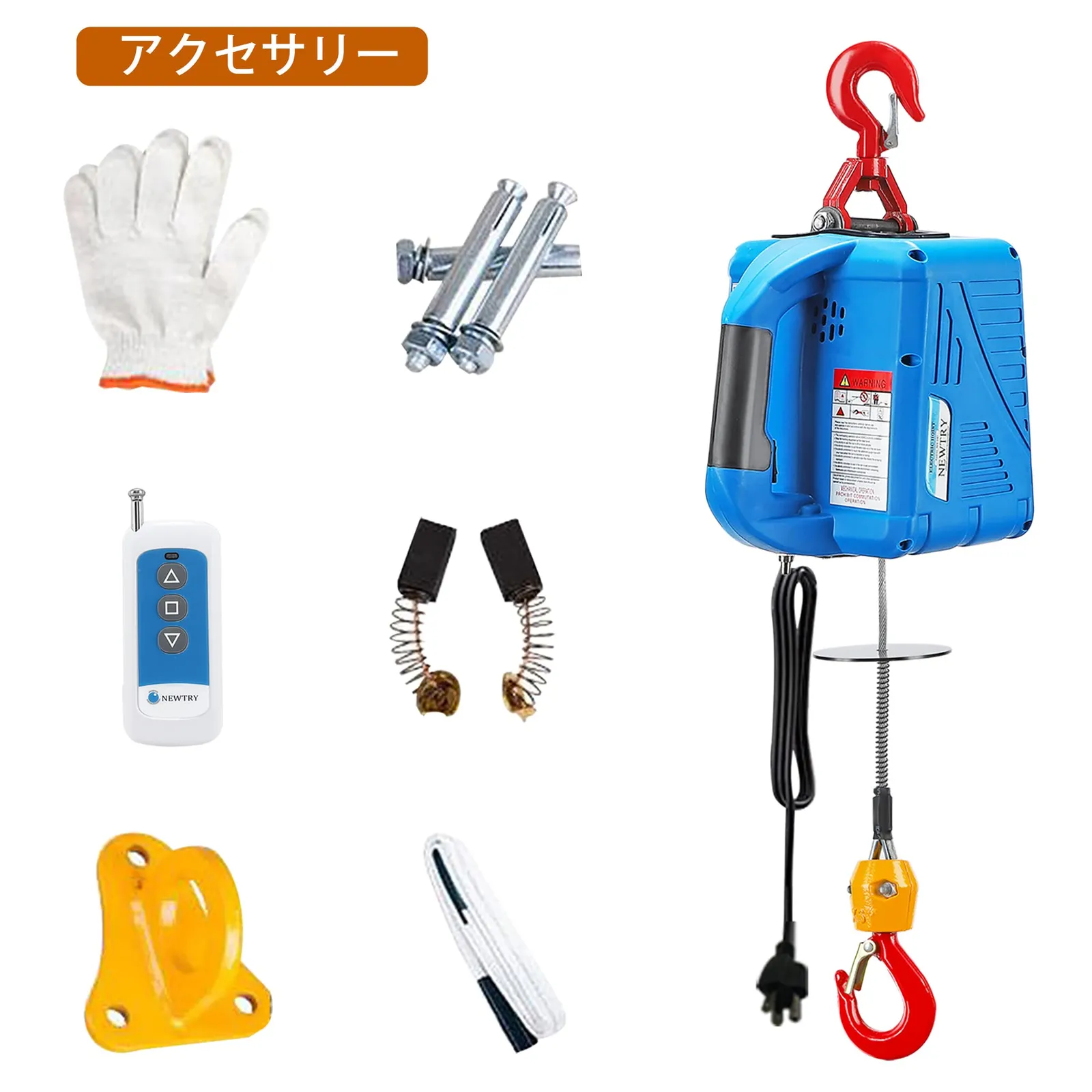 【用途】:重いものを吊り上げるのに適する家庭用電動ウインチです。