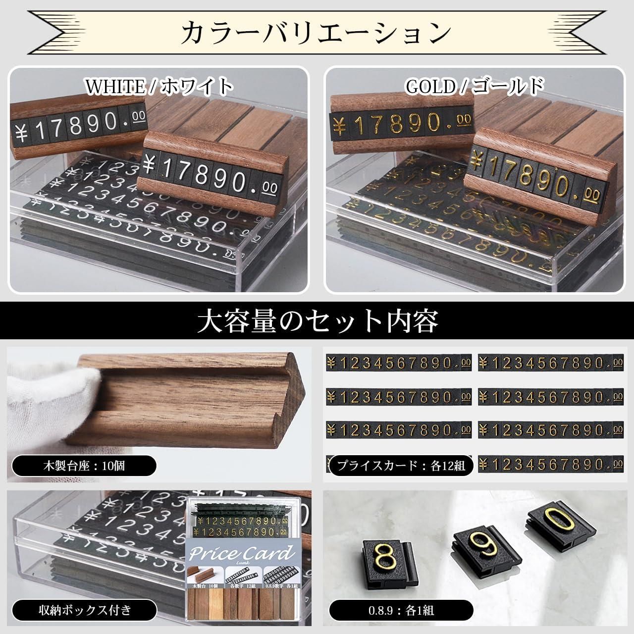 【10個 箱付き】木製 プライスカード 値札建て おしゃれ プライス台 セット 10個フレーム 20枚プライス数字プレート 値札 キューブ 価格表示 プライスキューブ ディスプレイ (GOLD, 6cm)