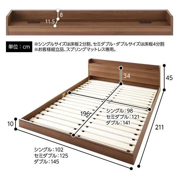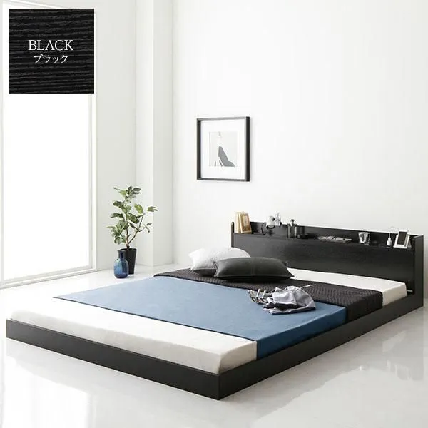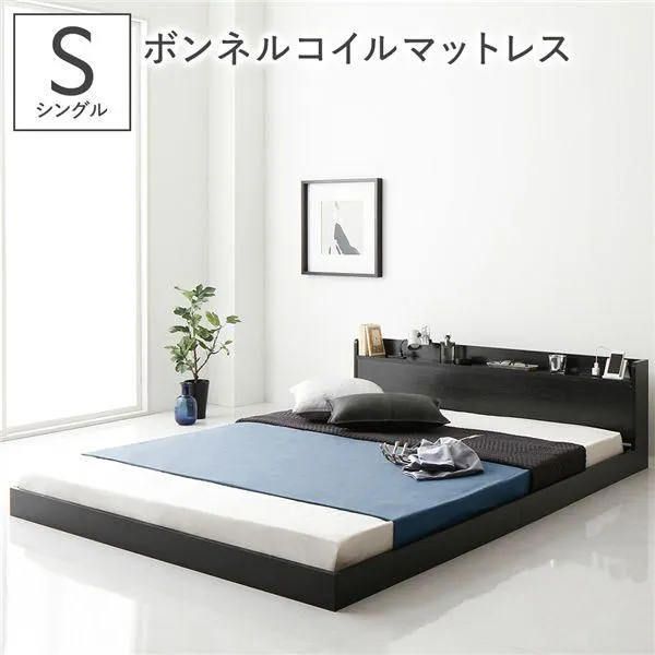 商品名:ベッド シングル ボンネルコイルマットレス付き ブラック 低床 宮付 コンセント すのこ ローベッド