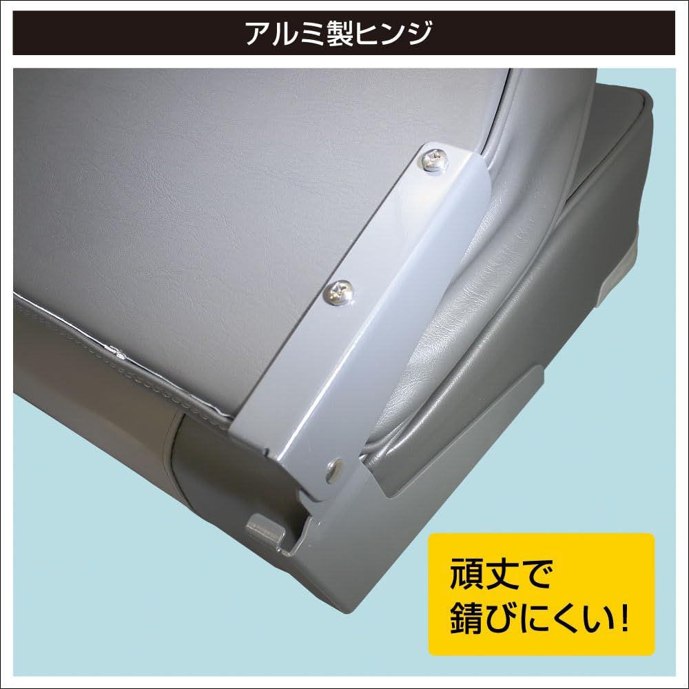 分厚くクッション製の優れた座面と背面! 頑丈なアルミ製ヒンジと錆びないプラスチック製インナーフレーム。 大きめのヒンジ部分はパウダーコートのアルミ製。 内部のフレームはヘビーデューティー・プラスチックを使用。だから錆びの心配はありません。 折畳み可能なスナップ付き。未使用時に折畳んで収納できるので、持ち運びや車内積載時に便利です。