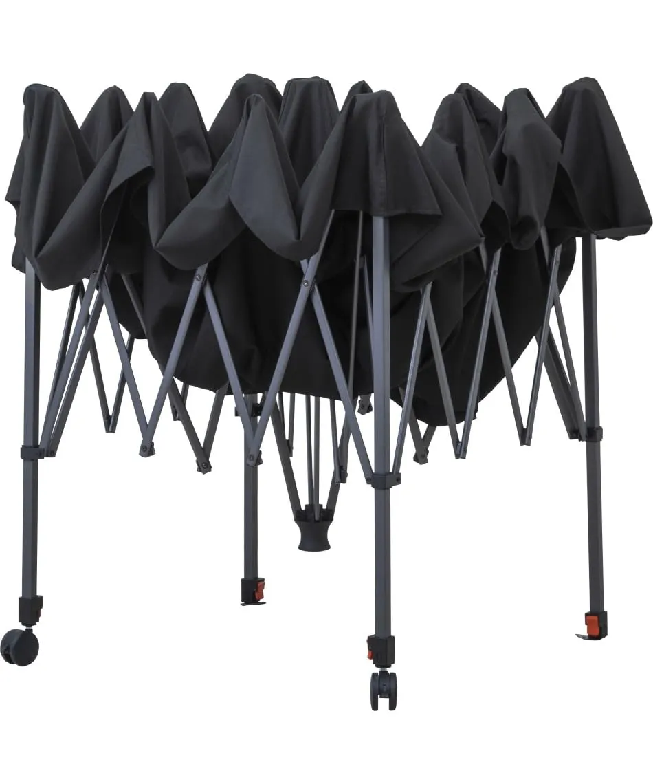 キャンプ場でのタープテントとしてご使用頂けるほか、サイドシェード(別売)と合わせると、お庭でのプライベートな空間づくりにも使える。
