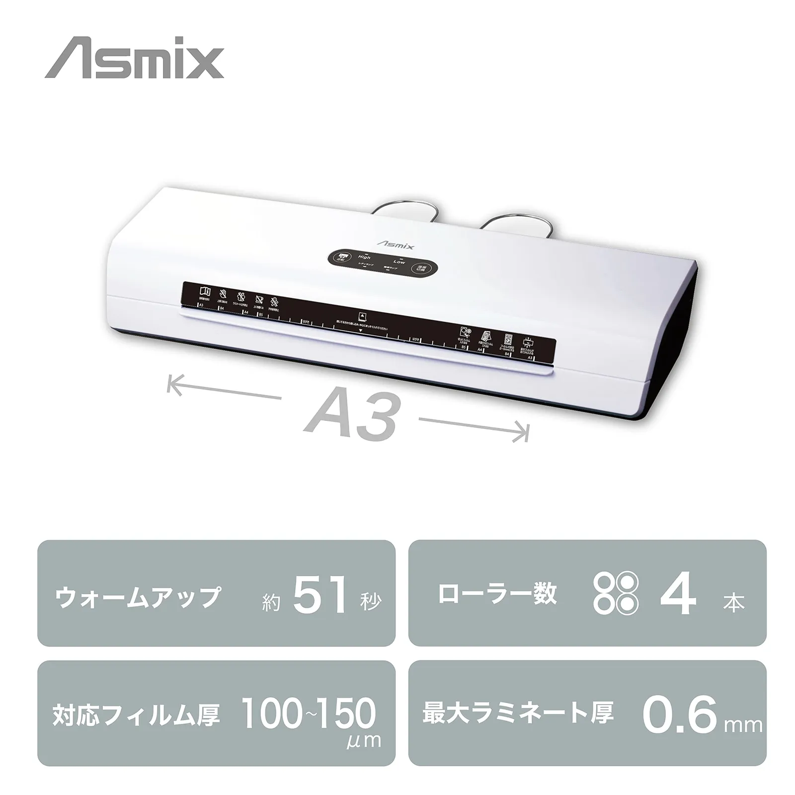 対応フィルム厚は100/150μ。温度切り替えスイッチあり。